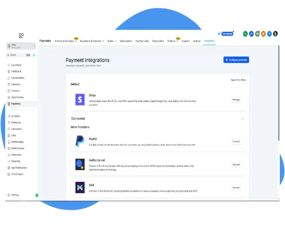 Connect Stripe (or your preferred processor in GHL)
